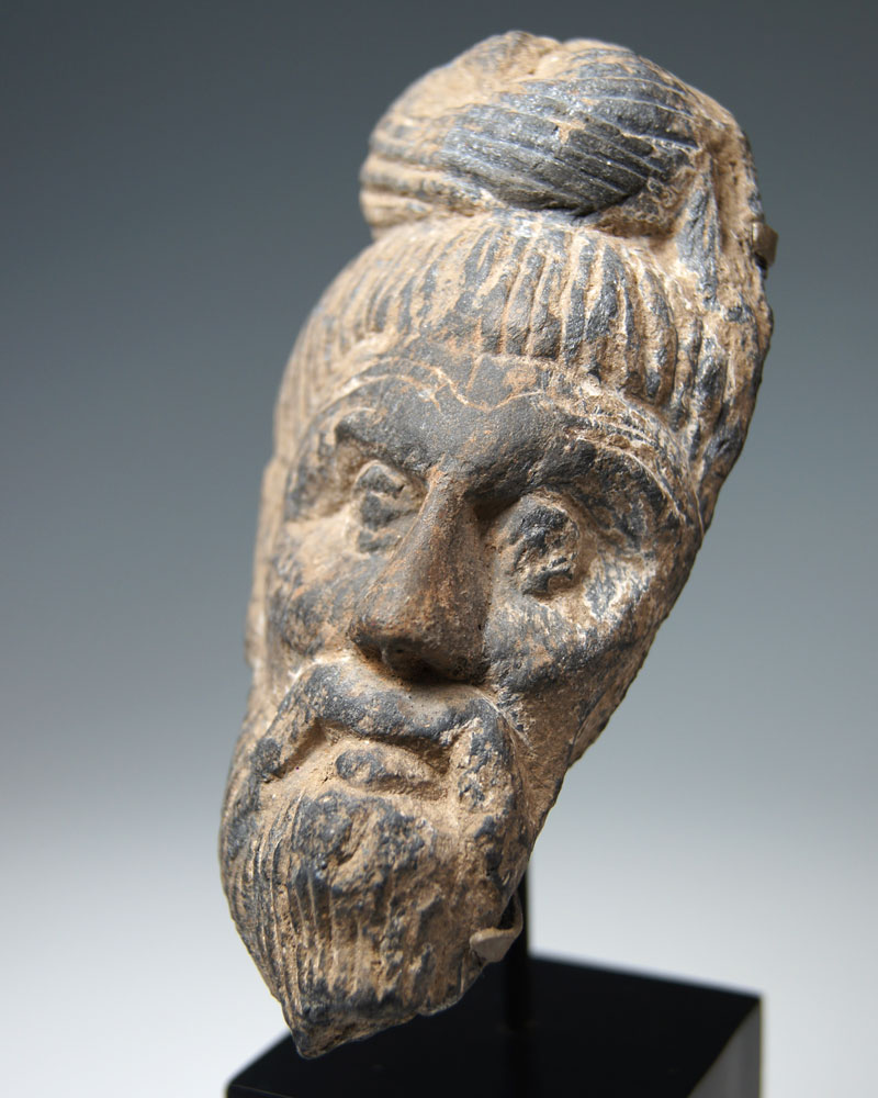 A Grey Schist head of an Ascetic Brahman, Gandhara, 2nd century AD